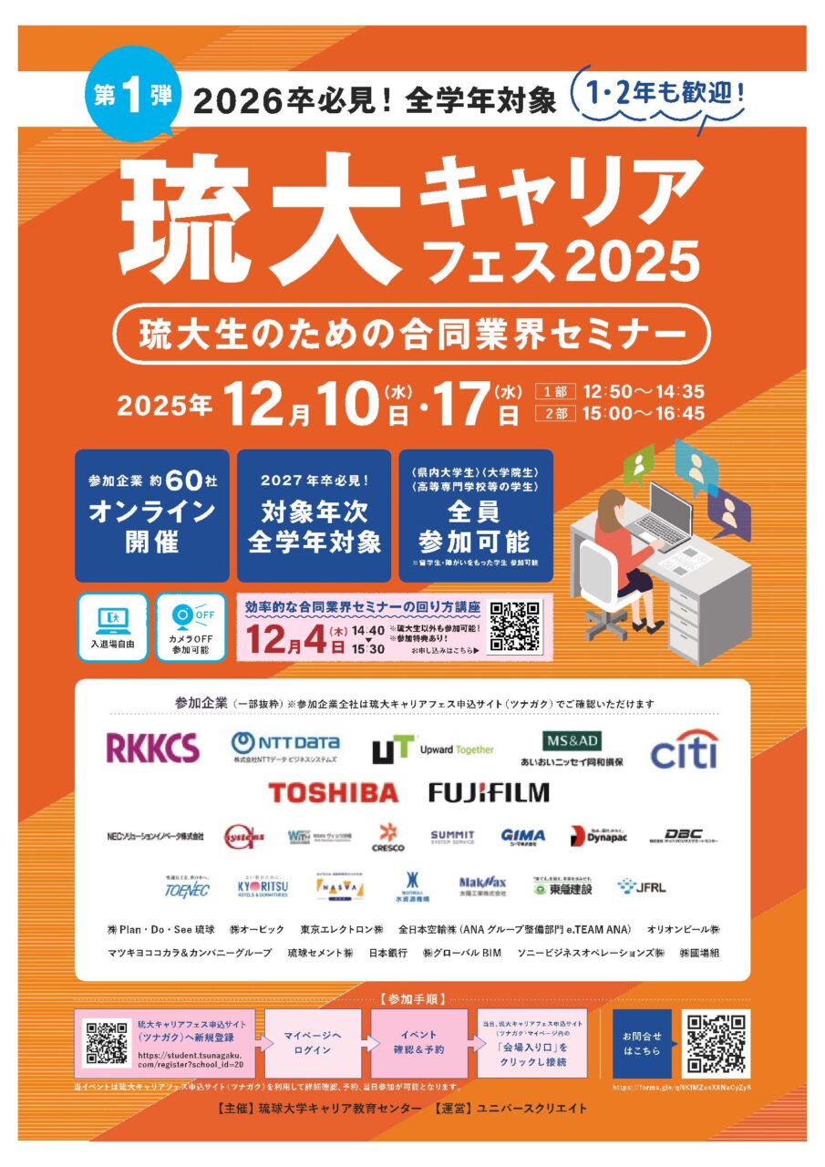 琉大生注目のイベント!琉大キャリアフェス2025の第一弾が開催されます!一度は名前を聞いたことある有名企業も多数参加します。