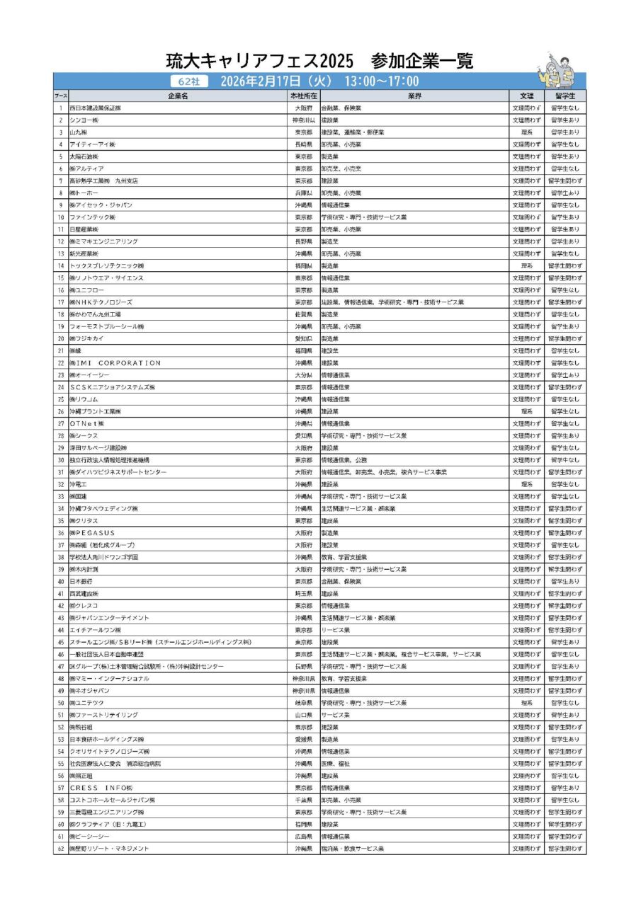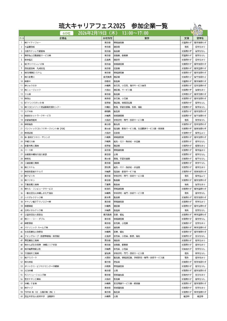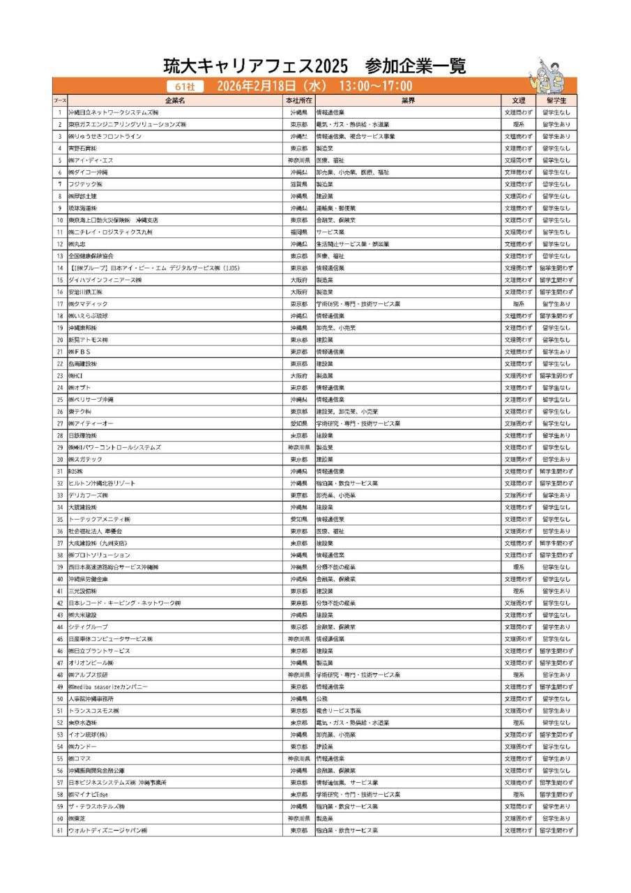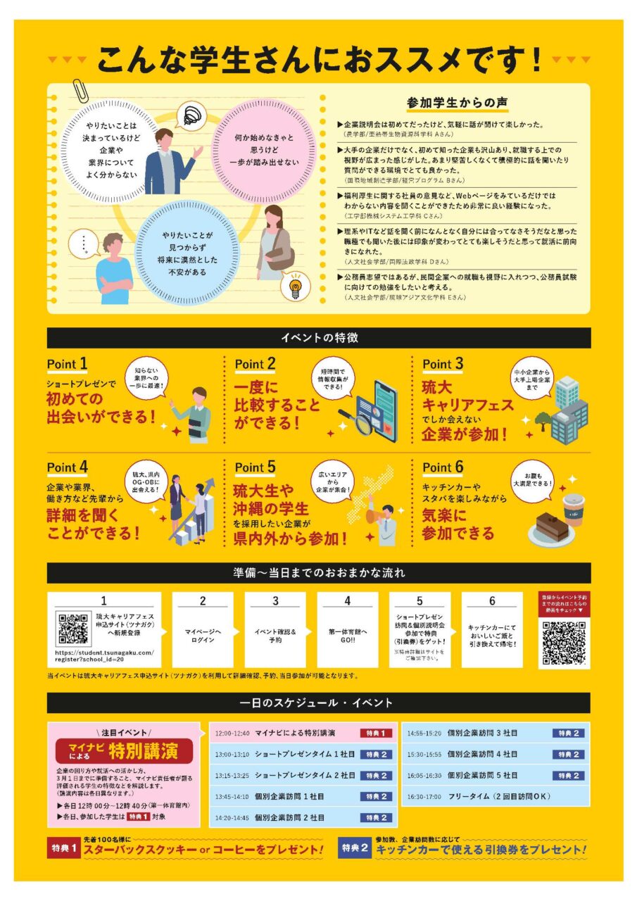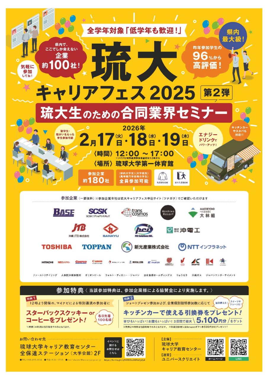 琉大生注目のイベント!琉大キャリアフェス2025の第二弾が開催されます!県内外から180社が参加します。一度は名前を聞いたことある有名企業も多数参加します。